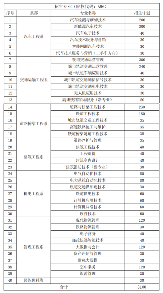 学院确立“大交通”“新交通”“智联网”专业建设理念,打造了汽车检测与维修技术、城市轨道交通运营管理、道路桥梁工程技术、建筑工程技术、电气自动化、物流管理和无人机应用技术7个特色专业群,招生专业总数达40个,其中教育部全国交通运输示范专业1个、自治区重点建设专业7个、自治区品牌专业7个,基本形成协调发展的现代化综合交通运输专业人才培育体系。